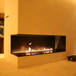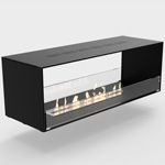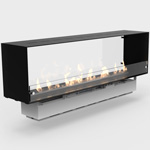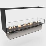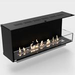 Available in various layouts: open to the front only, open to the front and back, open to the front and back and one side, open to the front and both sides. Made-to-measure, No chimney required, No smoke, ash or soot, 8mm powder-coated aluminum, 80mm front glass screen.