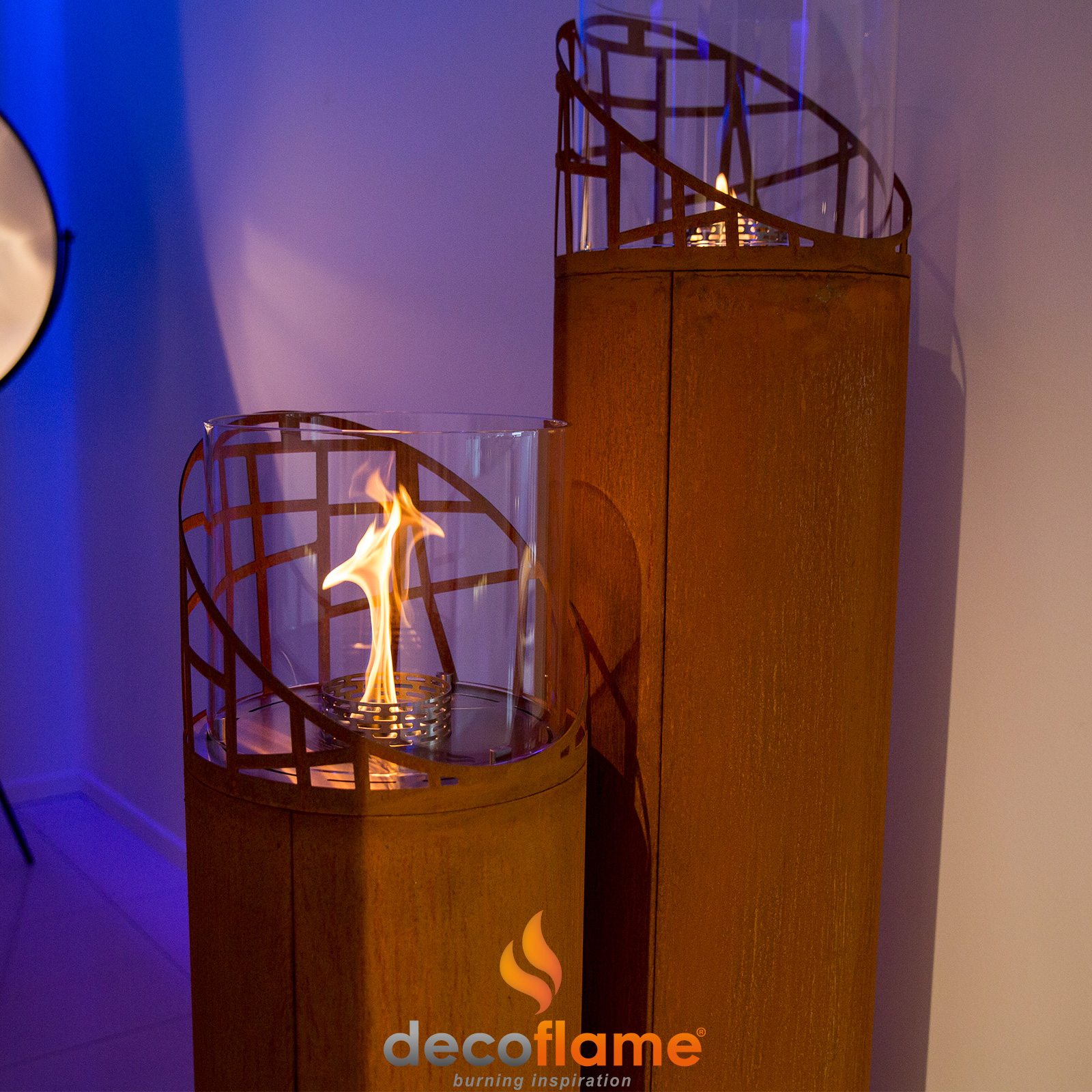 Brushed stainless steel manual burner, indoor/outdoor, Glass screen, No chimney required, No smoke, ash or soot, Easy to relocate.