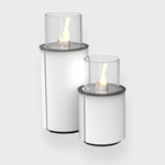 No chimney required, No smoke, ash or soot, Brushed stainless steel manual burner, Easy to relocate, Safety chamber, Glass screen, wheels (additional).