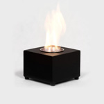 Tabletop Mini Cubic Fireplace Burner. Designed for Indoor or Outdoor use. Available in Black or Stainless Steel. Powder coated Steel base. Flame Extinguisher Included. This frame and burner weigh 6kg without fuel.